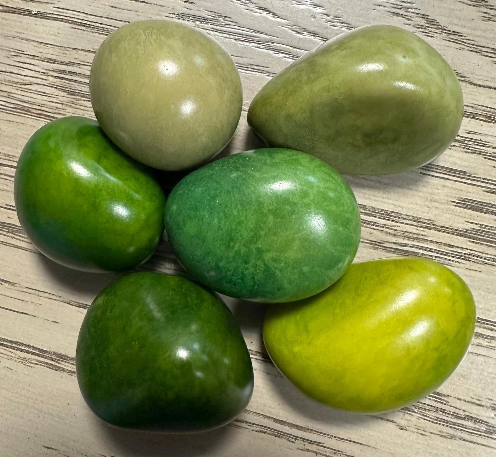 Tagua Nut Whole Seed Beads Mix of Green Colors | Mix of Big and Small Sizes | 6 Nuts from 3 to 5 cm. tall Undrilled Jewelry Making Carving