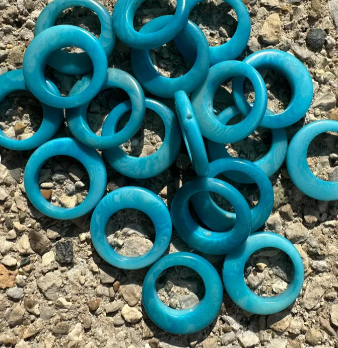 Tagua Nut Seed Beads Blue Tagua Round Hoop Ring Disc Circle Conector | 15 Discs Jewelry Making Supplies 2cm. approx. Vertically Drilled