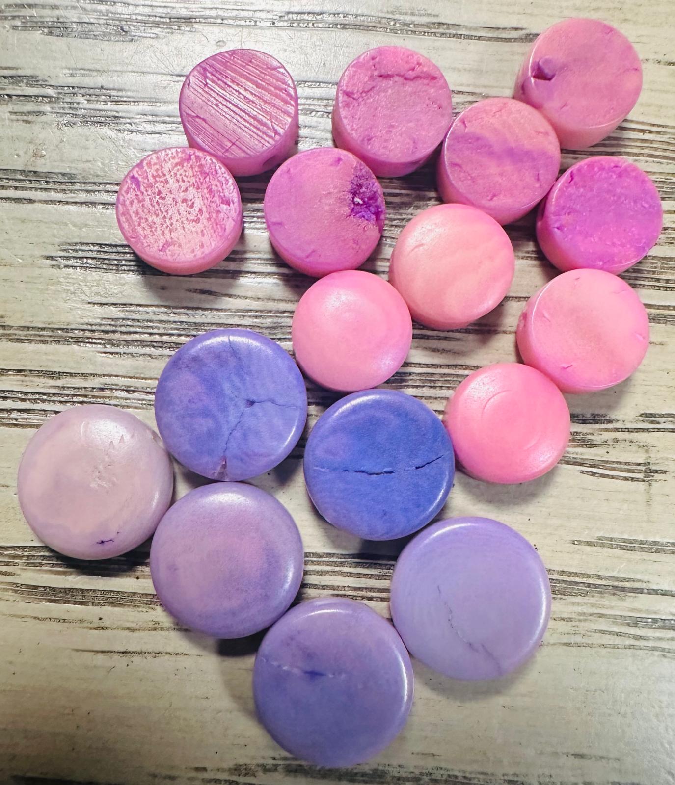 Tagua Round Beads. 50 MIni Purple, Lilac and Pink Pieces.