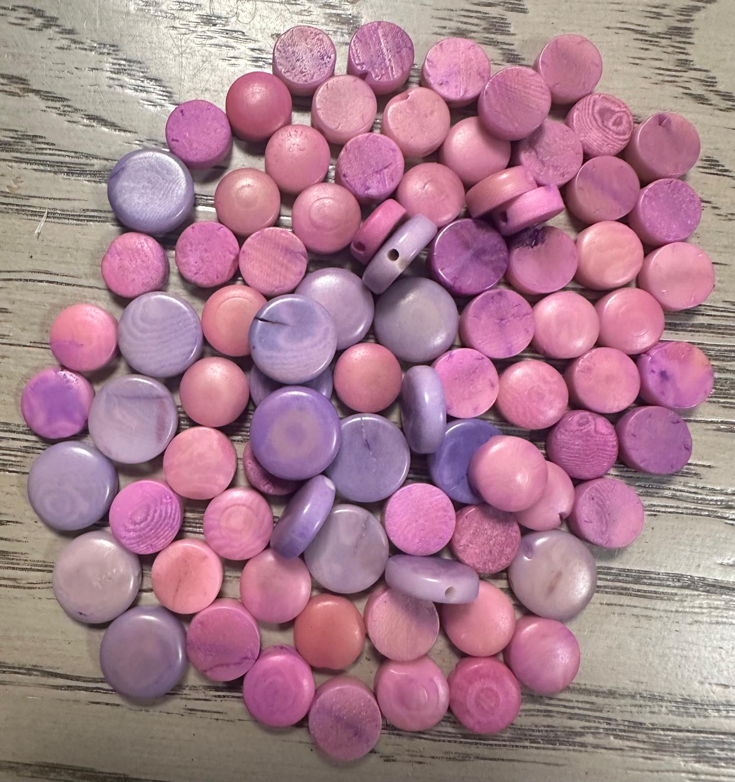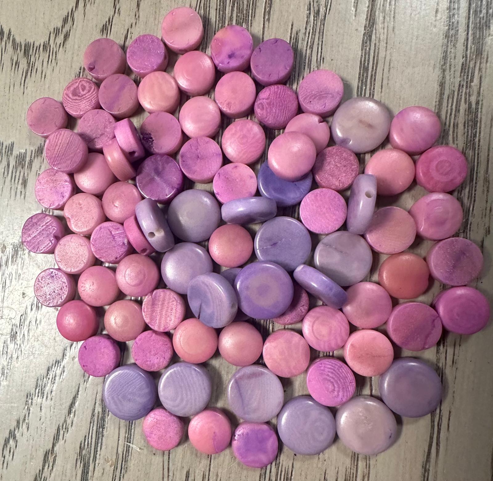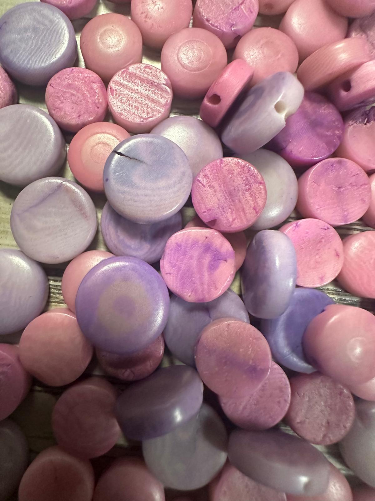 Flat Coin Shaped Tagua | 50 Mini Round Beads Mix of Pink and Lilac | Eco Ethical Jewelry Making Carving Woodwork | Side Drilled Beading Eco.