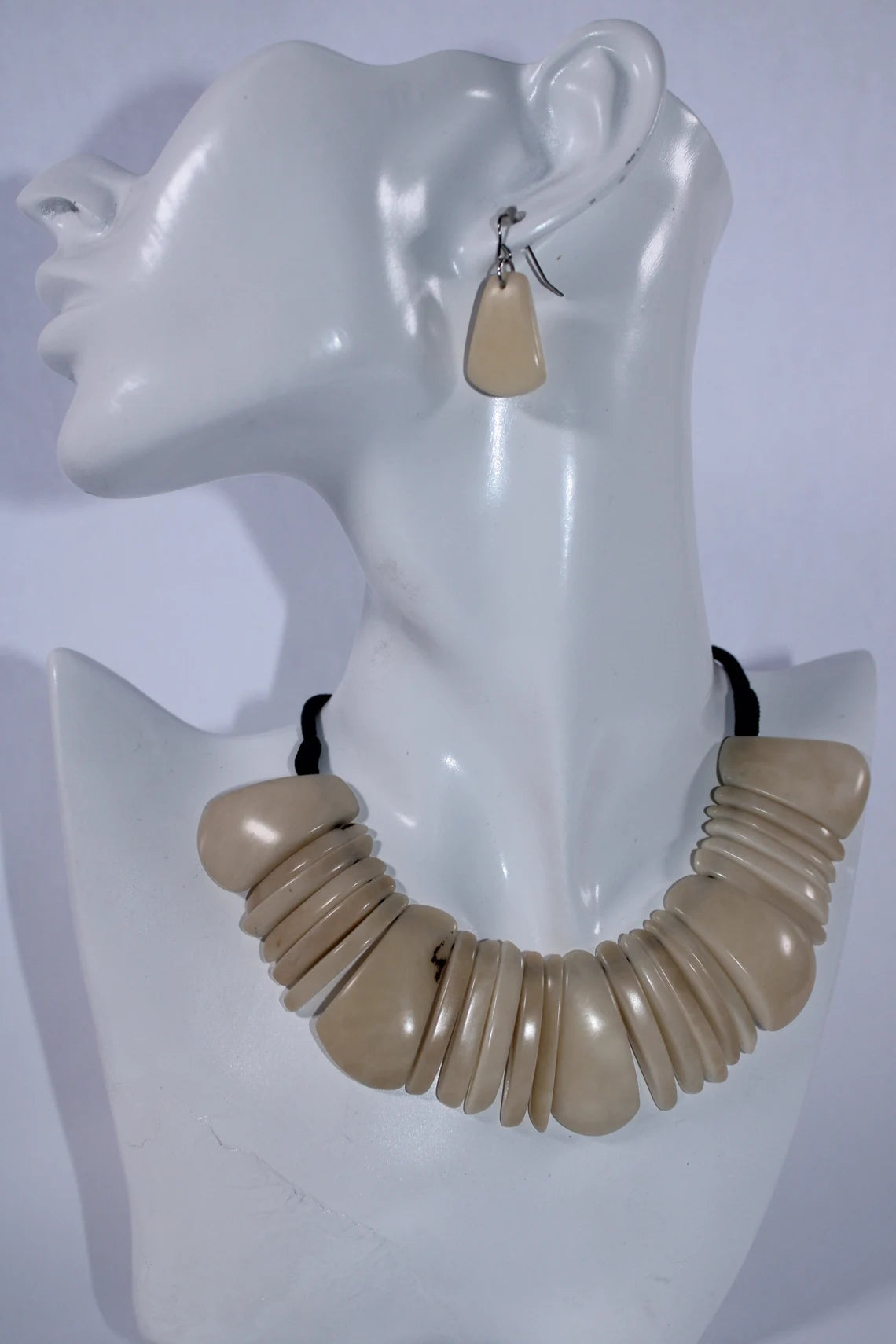 Handmade set of neacklace and eaarings. Handcrafted from tagua nut from Colombian rainforest. Pure and organic.