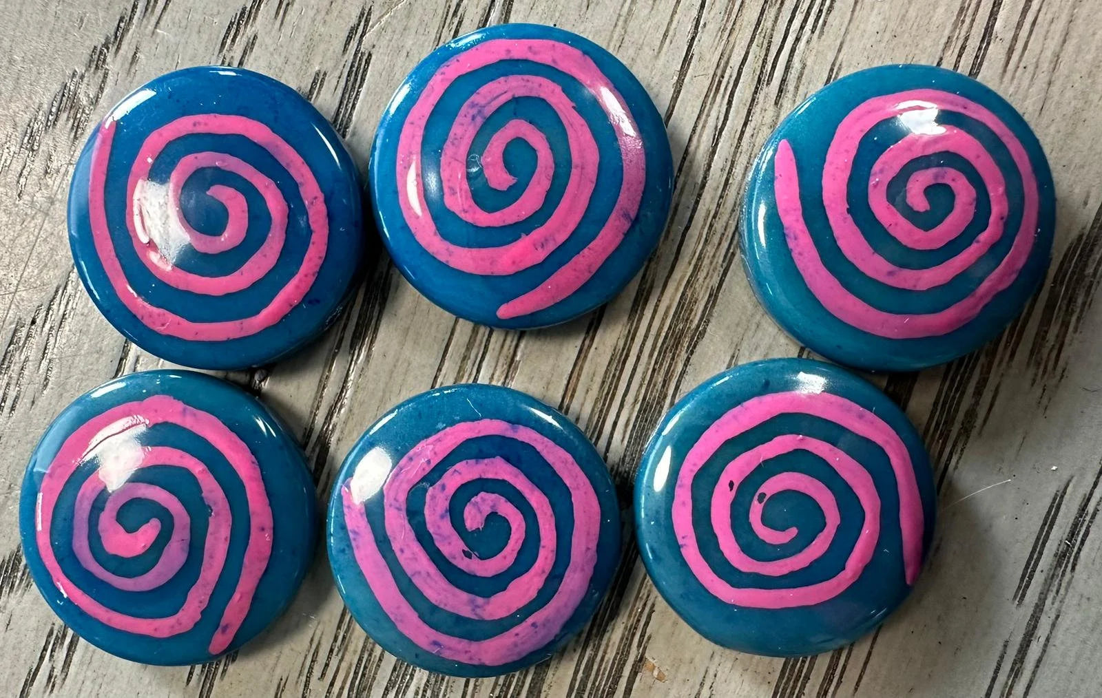 Tagua Bead Round Coin Shape with Spiral Pattern Handpainted | 2 cm. approx. Sustainable Jewelry Making Supplies | 16 Tagua Seed Beads