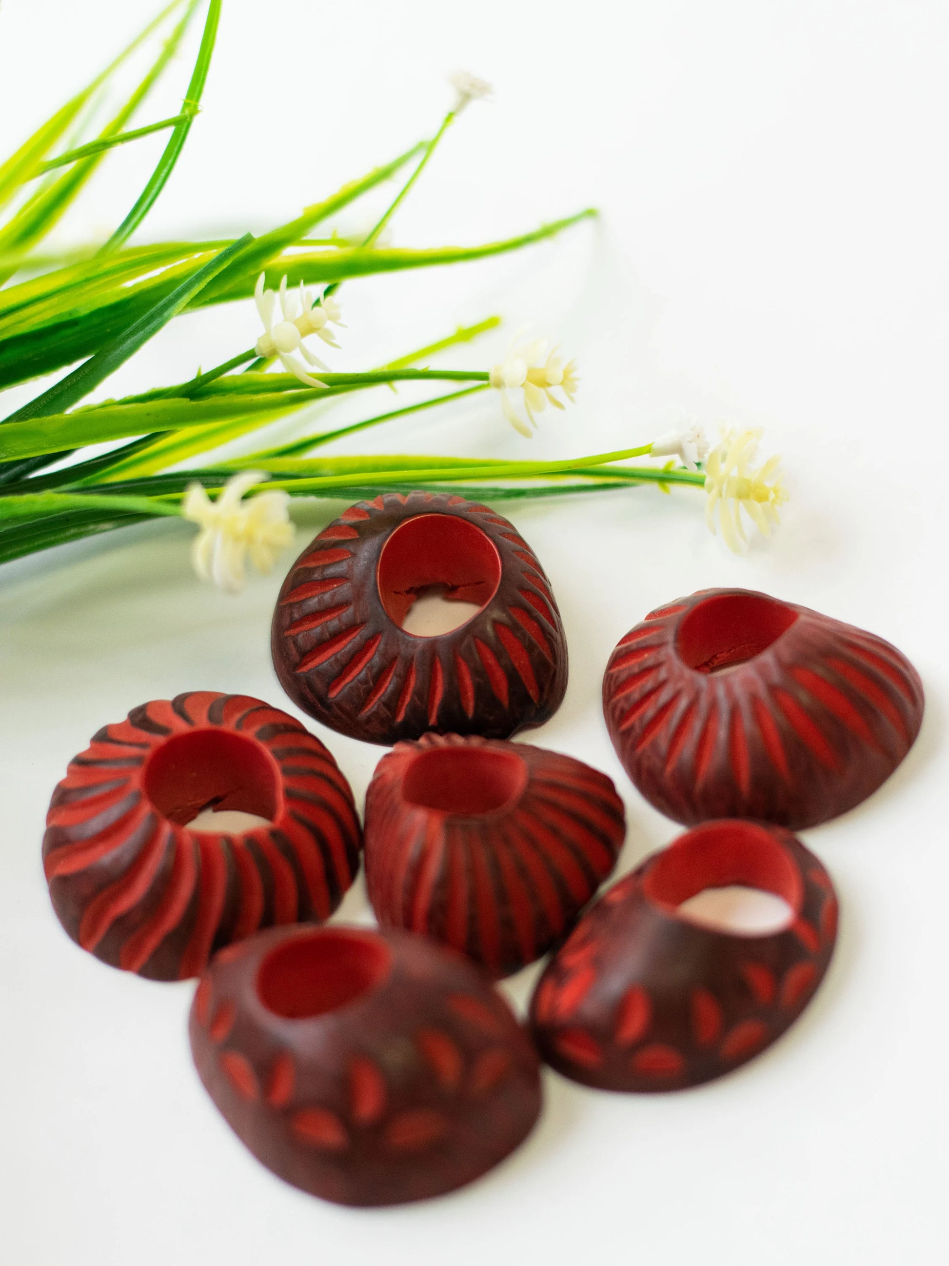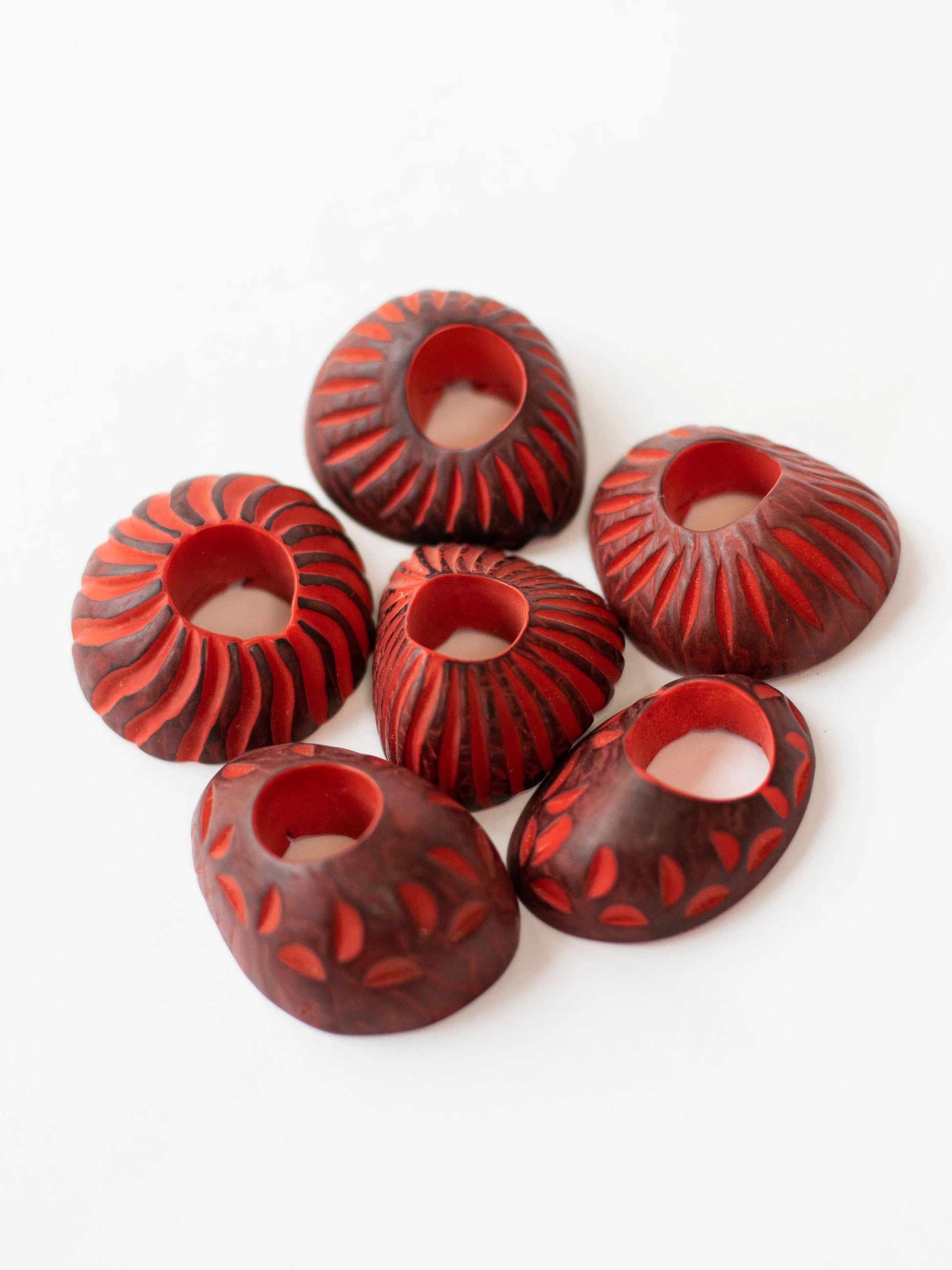 Tagua Spiral Hoop Beads. 5 Red Pieces.