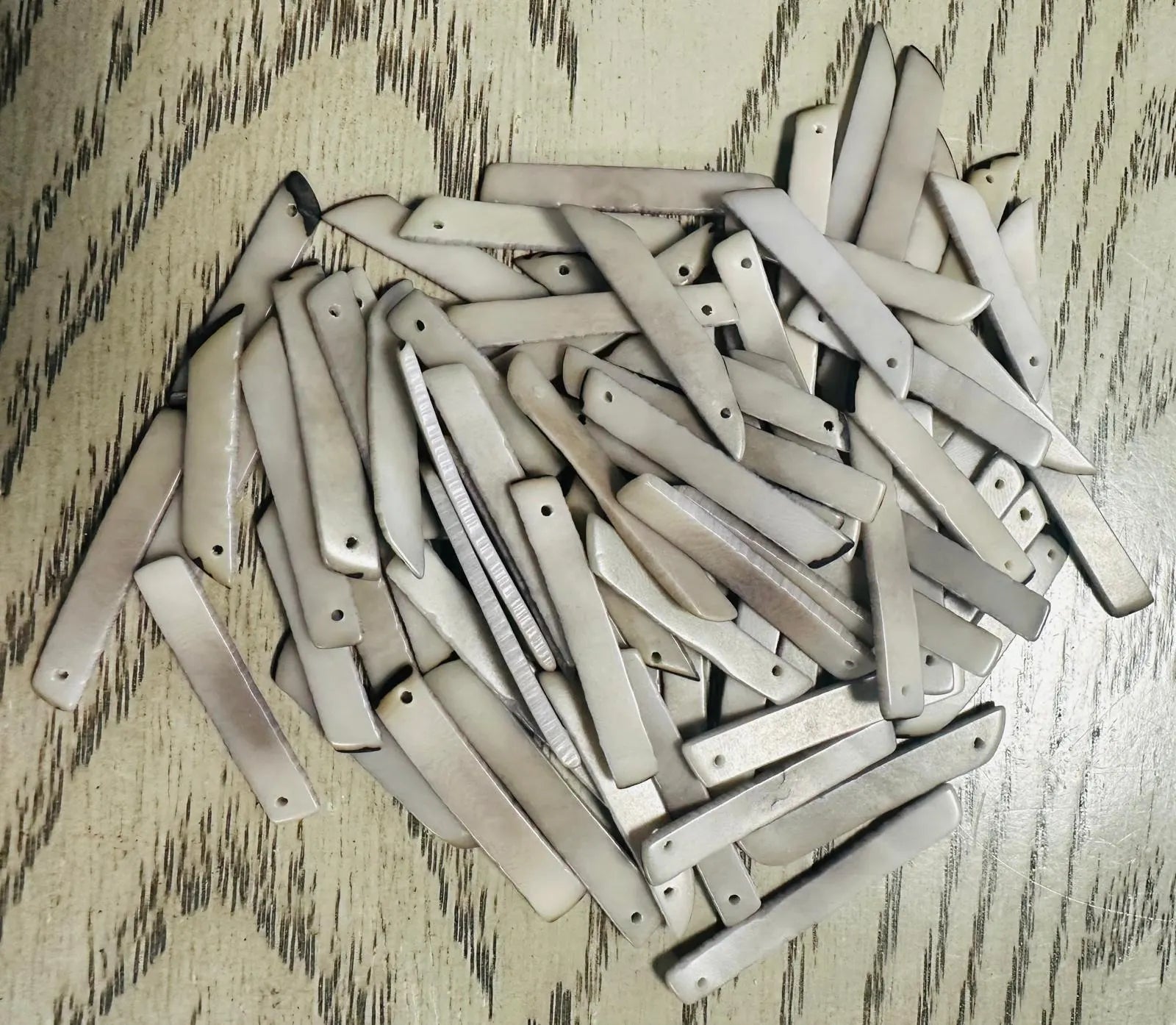 Tagua Stick Beads. 50 Gray Pieces.