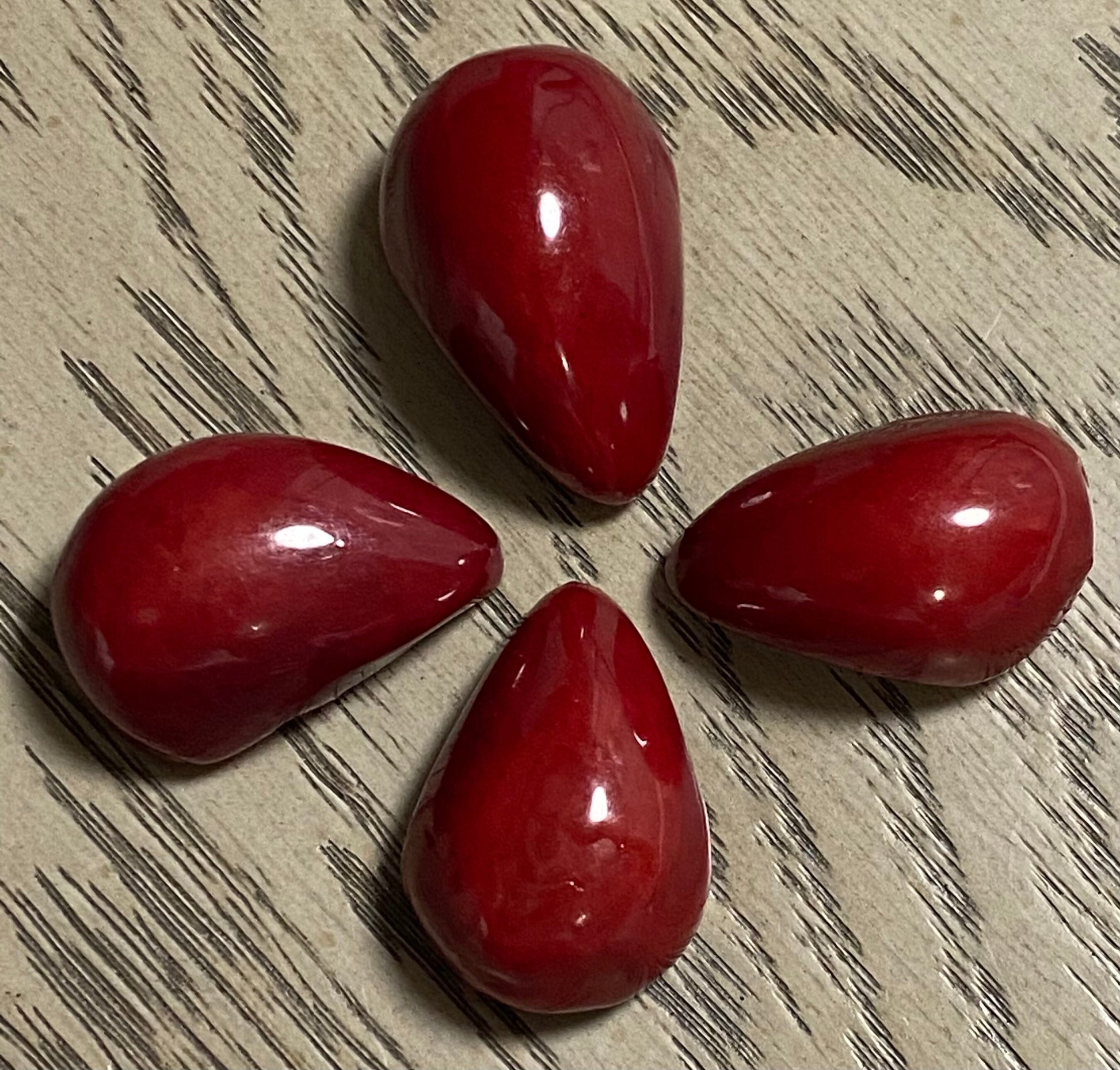 Tagua Teardrop Beads. 10 Red Pieces.