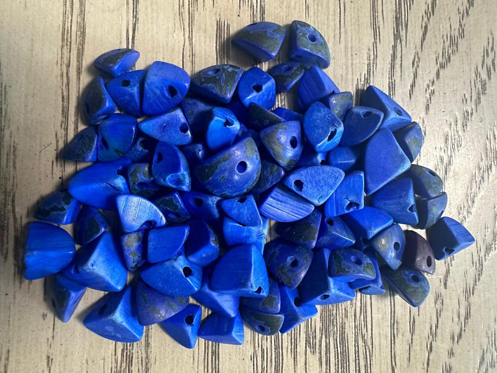 Tagua Triangle Beads.120 Blue Pieces