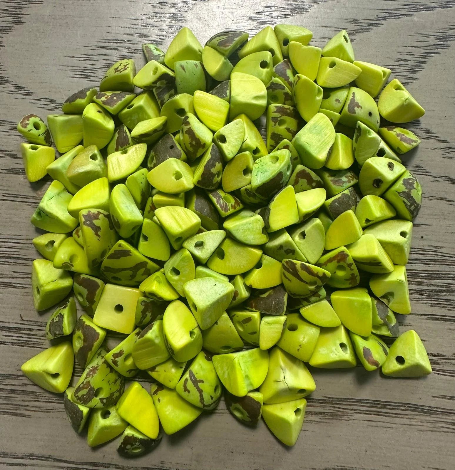 Tagua Triangle Beads. 120 Light Green Pieces