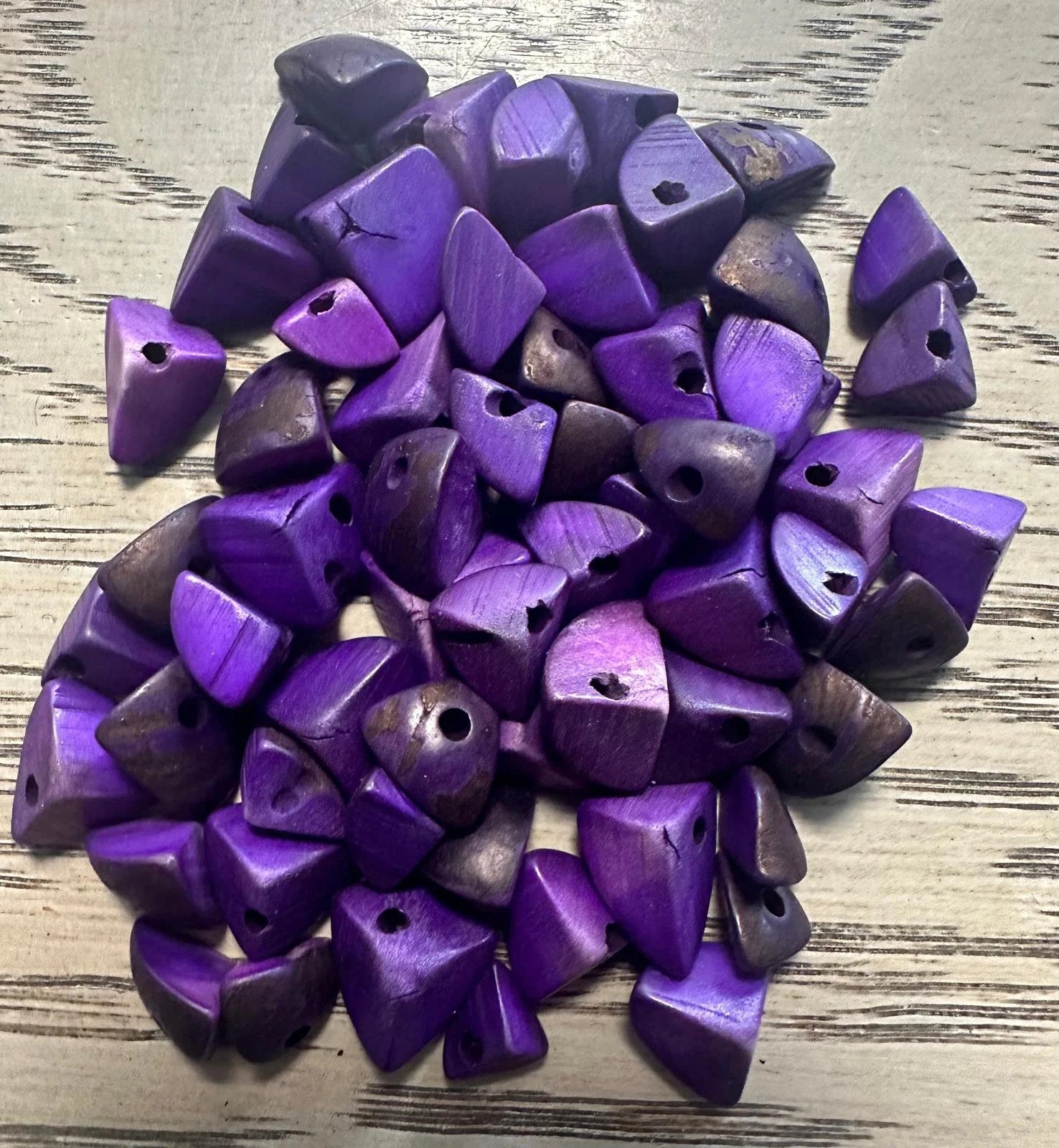 Tagua Triangle Beads. 120 Purple Pieces