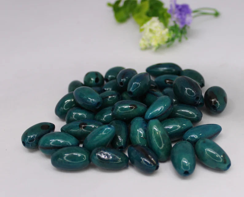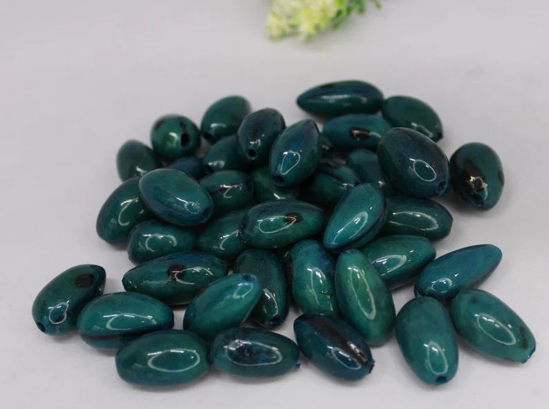 Turquoise beads made of camajuro seeds from Colombia. Size: 2.5 x 1.5 cm. approx. Natural beads. Pack of 30 beads. Free Shipping.