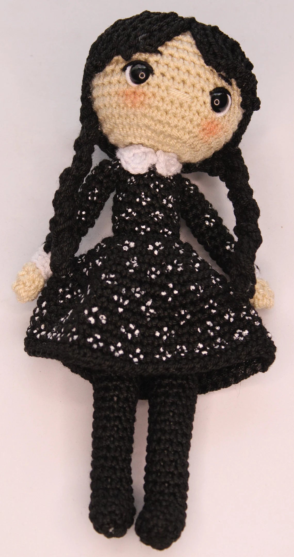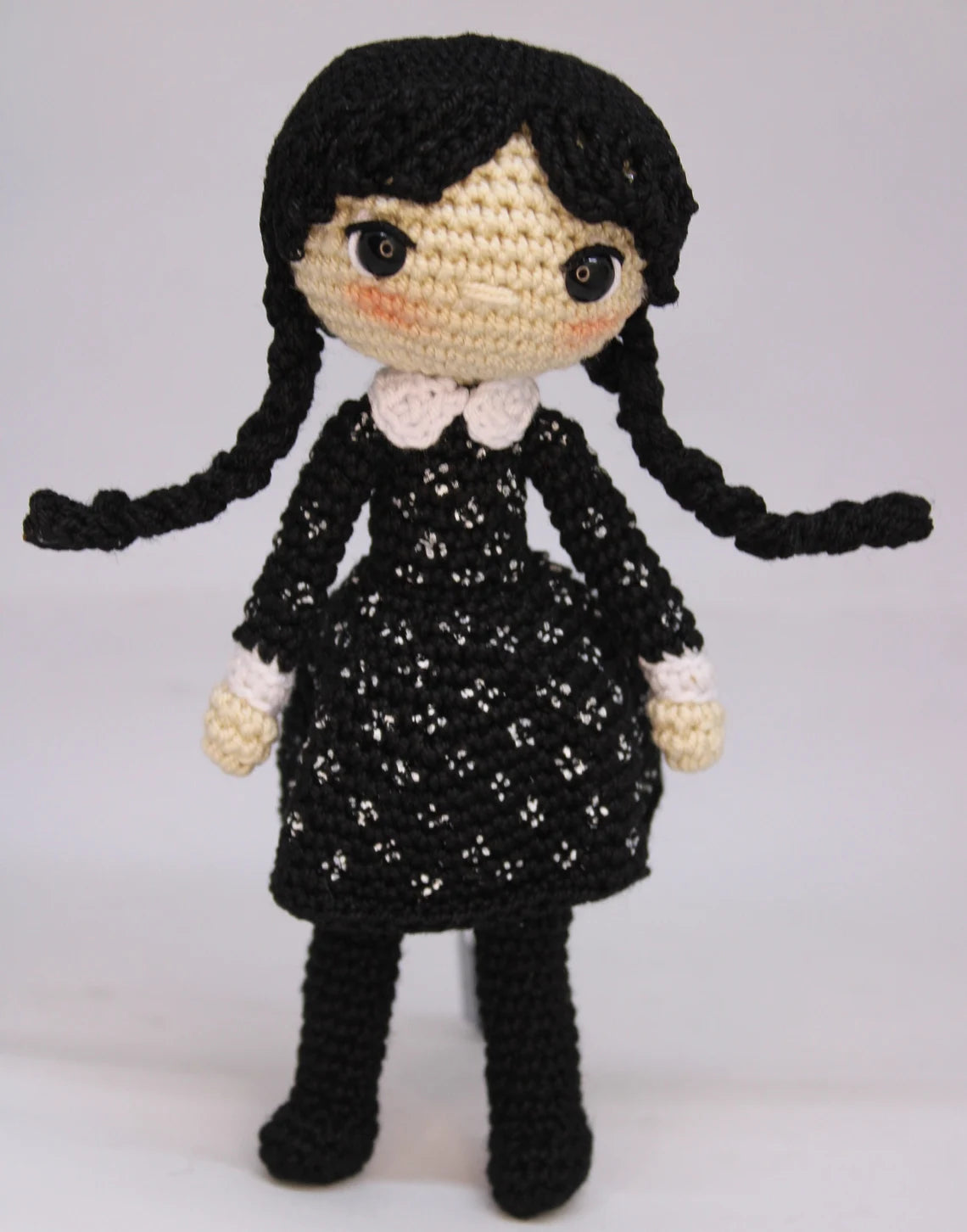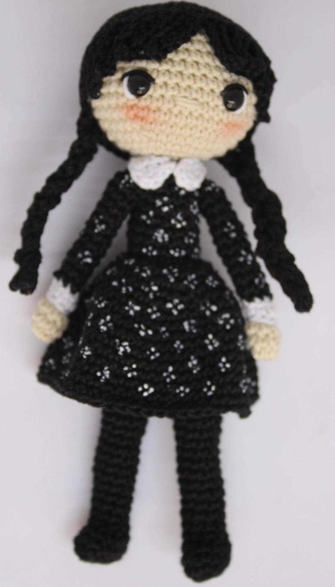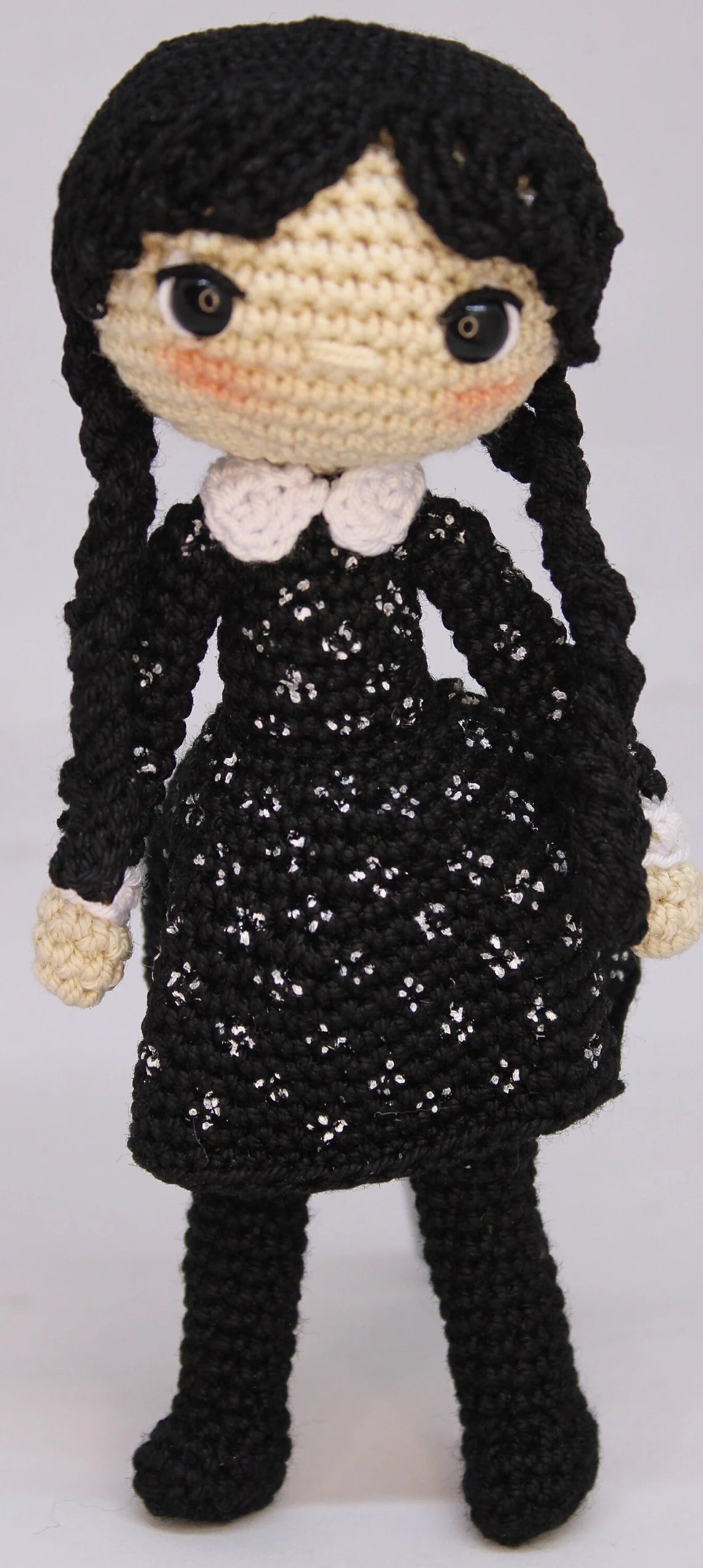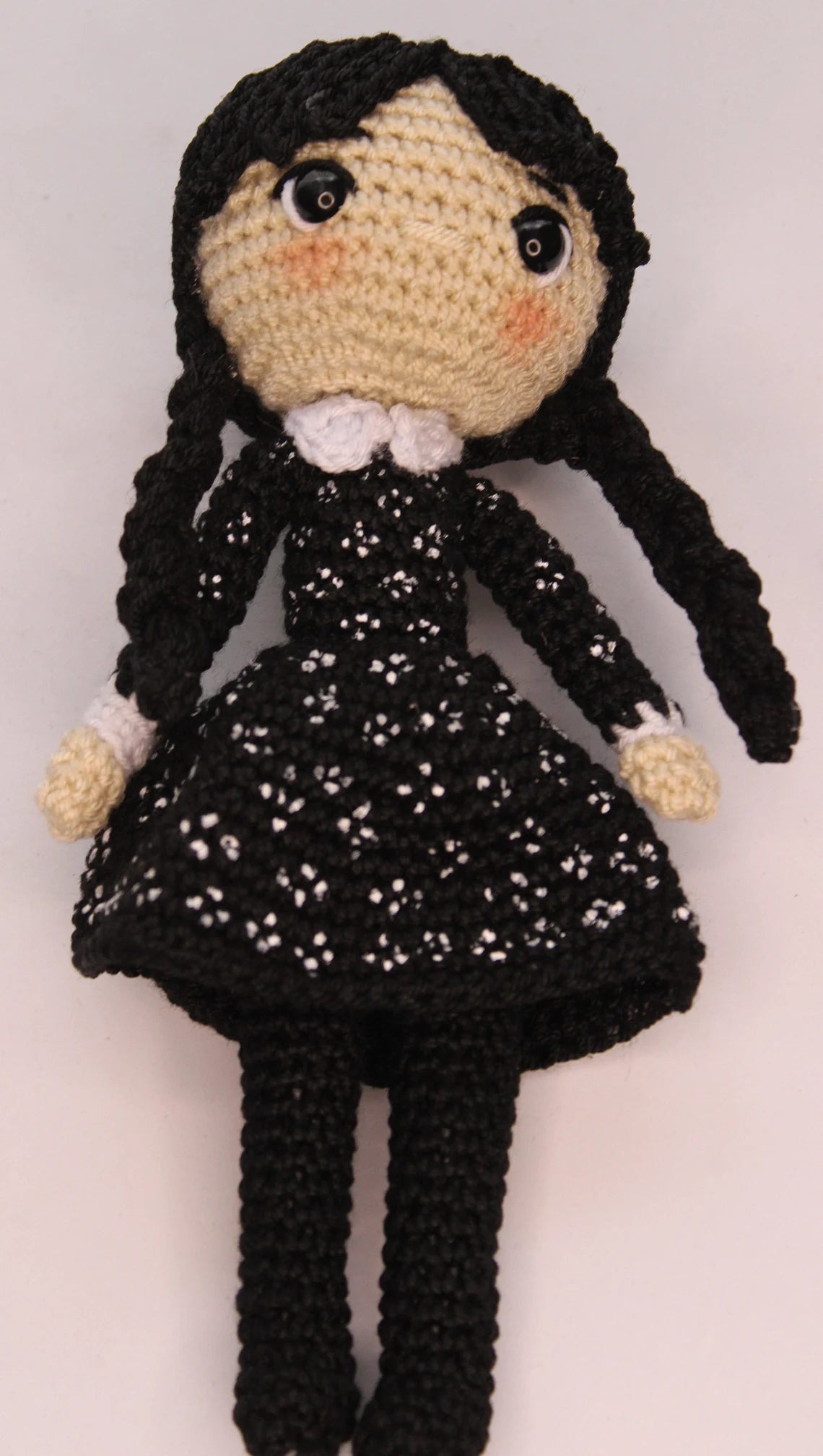 Wednesday addams, crochet, handmade, Addams family, Merlina crochet doll, Wednesday Addams handmade